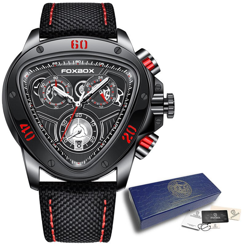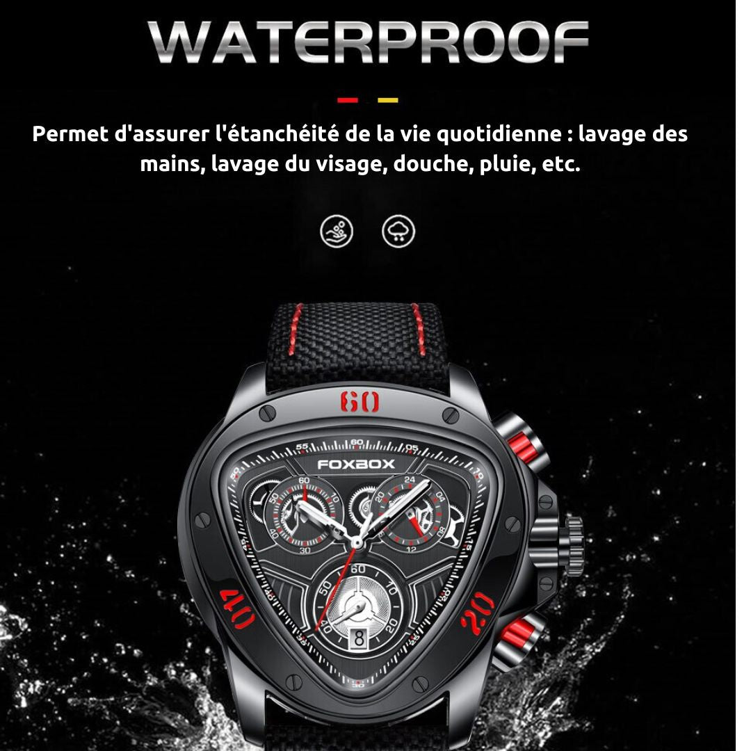 • Montre Sportive à la Mode : Cadran triangulaire avec 3 sous-cadrans pour le chronomètre, l'affichage 24H et les secondes. Design unique pour vous distinguer.